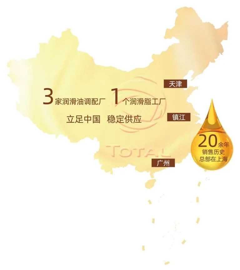 作为世界上主要的润滑油生产商之一,道达尔润滑油在中国已有20余年的销售历史,总部设立在上海。道达尔润滑油为中国用户提供一系列的高质量产品,主要产品包括:汽车润滑油(快驰系列、埃尔夫速胜系列)、商用车润滑油(红运系列、埃尔夫速胜系列)、 摩托车润滑油(动驰、摩速系列)及齿轮油、清洗油、防冻液等各种配套附属油产品。同时,道达尔能源工业油和油脂种类多达上千种,业绩在道达尔能源公司内排名不断攀升,已成为道达尔能源全球润滑油业务中最重要的市场之一。道达尔工业油致力于提供国际领先的一体化方案,全方位持续以高新技术、卓越产品和周到服务携手钢铁、电力、水泥、矿山、造纸、化工、压缩机、纺织、金属加工、食品等行业客户共同努力,降低成本,提高效益